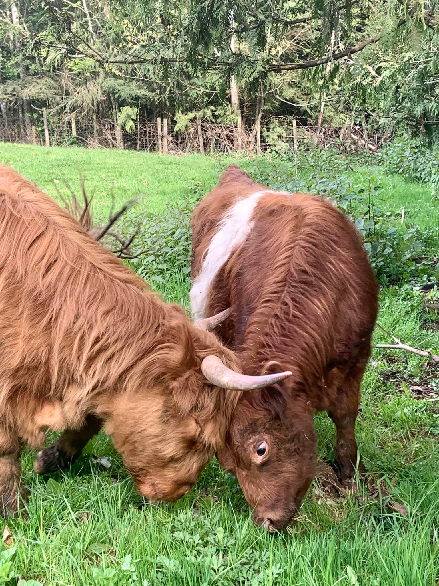 | We breed Highland cows to our Galloway bull and our